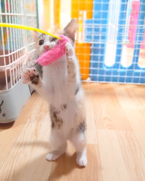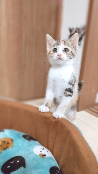 | 特徴(性格など) | 保護したばかりなので怖がってはいますが、好奇心の方が上回るらしく、おもちゃを出すとノリノリで遊んでくれます(^^) ぜひ、さくらちゃんに会いに来てください♪ ・ノミダニ回虫駆除済み ・エイズ、白血病検査予定 ・3種混合ワクチン接種予定 |