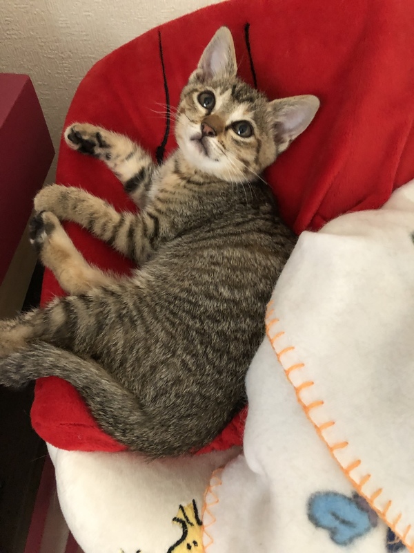 | 特徴(性格など) | グレートラ柄の♀です。保護3日目で慣れてくれました。良く遊び、良く食べ、良く寝ます。 | ||