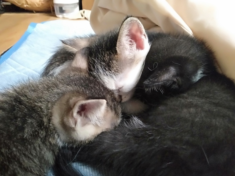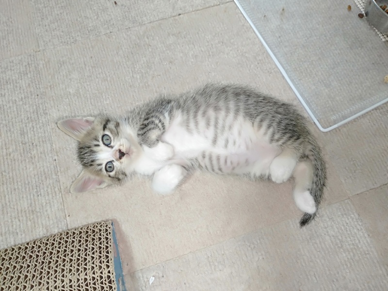 | 里親募集する理由 | 会社の防犯カメラに映らない視覚の駐輪場に捨てられていた子猫です。 元々4匹いましたが1匹は無事譲渡されました。 先住猫とも相性はいいのですが5匹飼えるほど広い家ではないこと 猫アレルギー持ちであるため新しい家族の元で幸せになって欲しいと思い募集しています。 |