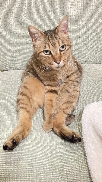 | 特徴(性格など) | 雑種で、尻尾が短くずんぐりむっくりしてます もともと捨て猫ですが、 子猫の時にうちに来てそこからは完全家猫です 最初は人見知りしますが、 人に慣れるのも早く、甘えたがりです 撫でて欲しい時は頭突きをしてアピールします 歯がほとんどないですが、食事には影響してません |