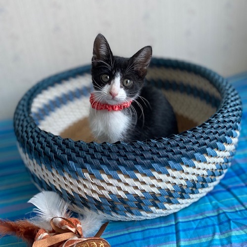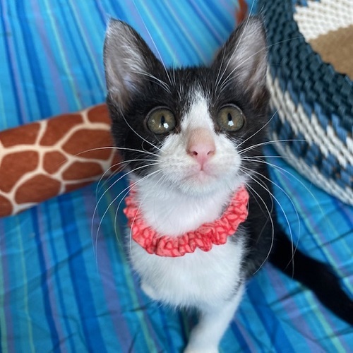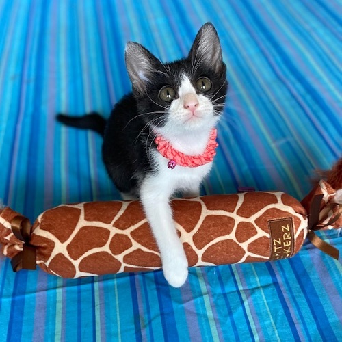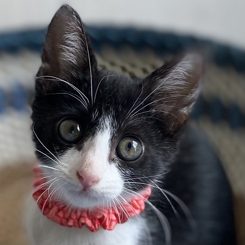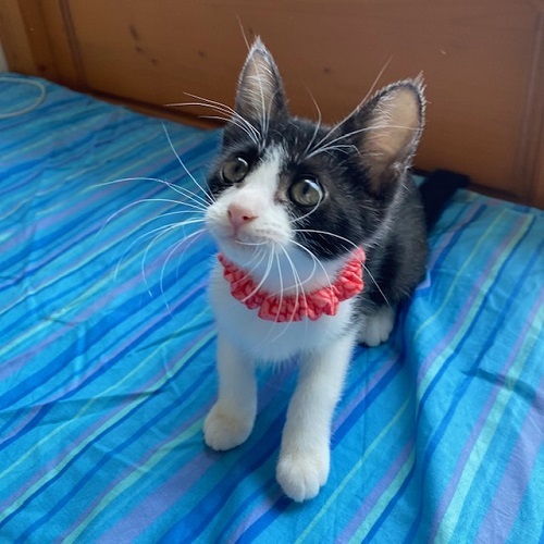 | 特徴(性格など) | 穏やかな性格でケージから出たい時やご飯の時は ハチワレの豊かな表情で可愛くアピールしてきます。 小さな時から人の手で育てられたので人馴れもバッチリです。 兄妹のねねくんには一歩譲っている感じですが、遊んでいる時は負けていません。 2匹仲良しなので一緒にお迎えしていただけると嬉しいです。 |
