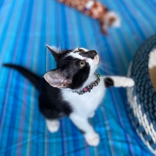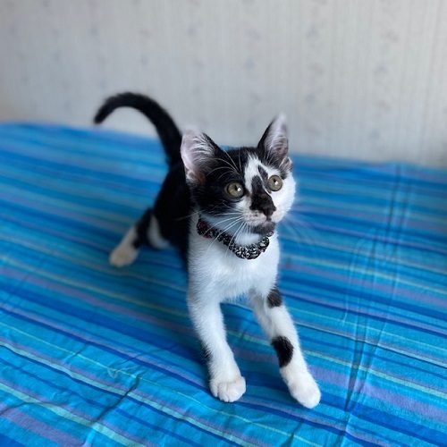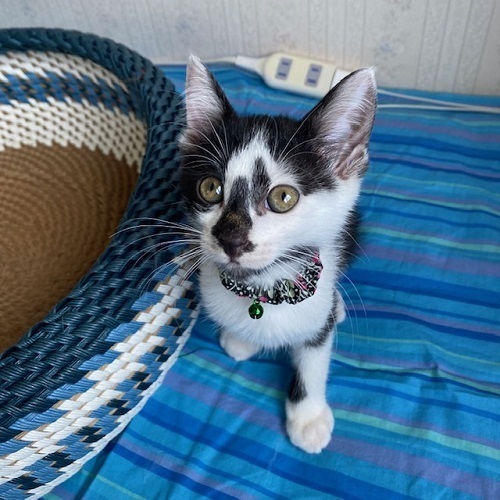 | 特徴(性格など) | とても穏やかな性格です。 ミルクボランティアさんに『ねねちゃん』という女の子のようなお名前をつけてもらっていたようですが、なるほど!な感じであまり男の子っぽくない印象です。やんちゃというよりは表情が愛らしくとても可愛い男の子です。 ちなみに我が家では牛柄なのでCOW COWと呼んでいます♡ 小さな時から人の手で育てられたので人馴れもバッチリ。 初めての方も育てやすいかと思います。" |