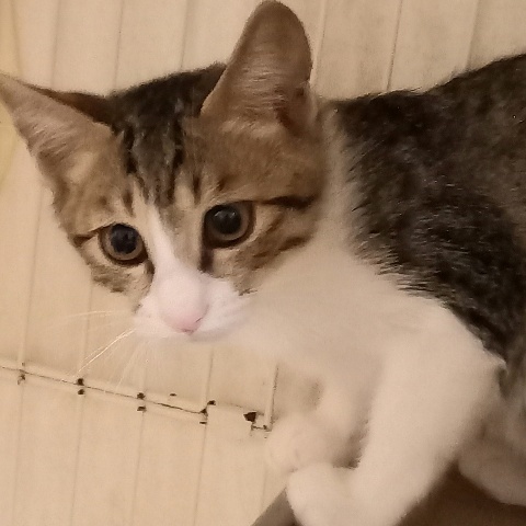 | 特徴(性格など) | アーモンドアイピンクの肉球カギ尻尾のりんちゃんです。 なかなか心を開いてくれずチュールやおやつは手から食べるのに触るのはイヤ!みたい。 姉妹のすずちゃんは新しいおうちに行ってしまい、りんちゃんもがんばろうね。 人馴れの過程も楽しんで下さり脱走対策お願いできるおうち希望です。" |