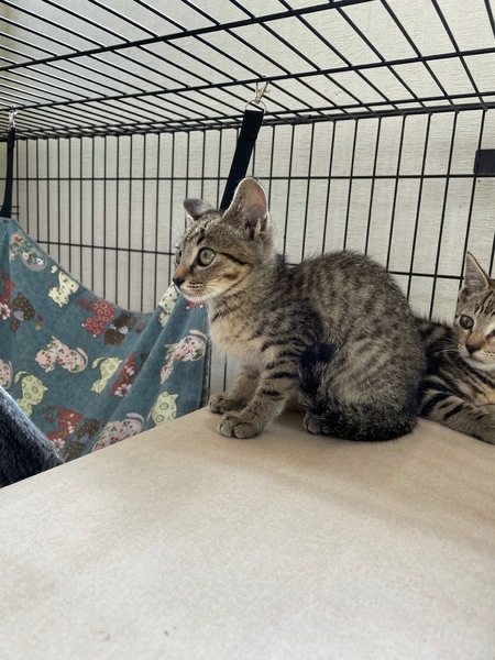 | 特徴(性格など) | キジトラ男の子 シッポはまっすぐ 人馴れしています 兄弟で過ごしてきたので猫にも慣れております 白血病・エイズ 陰性 ノミダニ虫駆除済み |