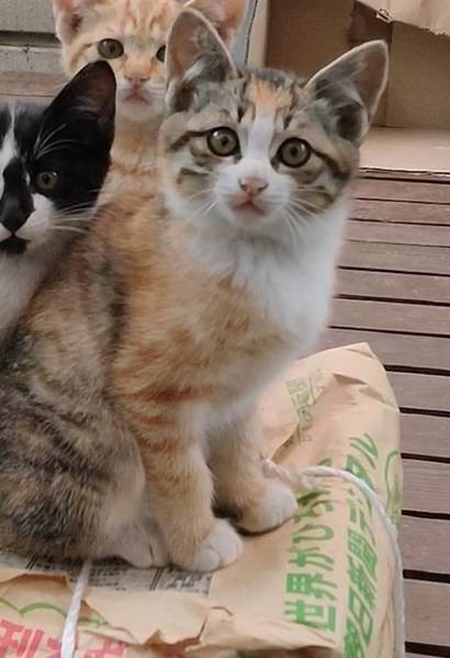 | 特徴(性格など) | 三毛ちゃんはおっとり少し臆病な所があります。茶白ちゃんはおとなしいです。 | ||