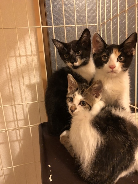 | 特徴(性格など) | 仲良し4姉妹の1匹です。 一番懐くのが早く、性格はおっとり・マイペースといった感じです。 体重は7月17日時点で1.2kgでした。 エイズ (−) 白血病 (−) 現在トライアル中です |