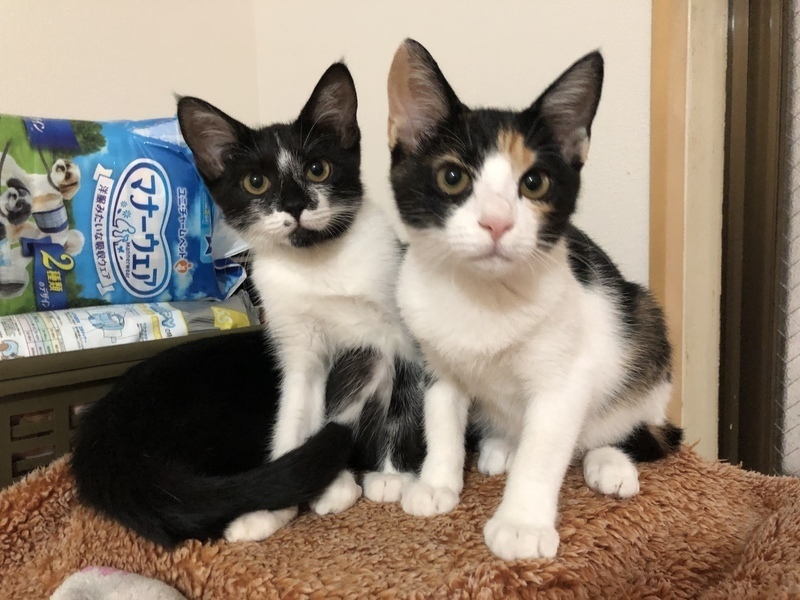 | 特徴(性格など) | 仲良し4姉妹の1匹です☆ 一番食い意地がはっており、おやつを目の前にすると みんなを踏んづけてでも食べにきます(*゚▽゚*) 顔を見ただけで ゴロゴロと喉をならしてくれる とても甘えん坊さんです(^^) かわいいブチ柄ちゃんで、 チャームポイントは口元のほくろです(^^)☆ 体重は7月17日時点で1.1kgでした。 エイズ (−) 白血病 (−) 現在トライアル中です。 |
