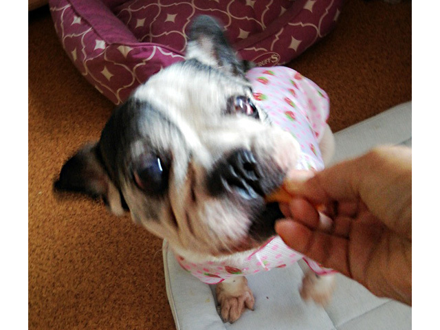 | 特徴(性格など) | ■ 基本情報 ・管理番号 【210622-13】 ・犬種・性別・名前(仮) フレンチブルドッグ ♀ ビビアン ・年齢・体重 推定9歳 体重 8.56kg ・特徴 毛色は白黒柄のパイド。身体にはあまり黒い部分はありませんがしっぽは黒、の女の子です。 右耳が折れているのもチャームポイントです。左目が小眼球、右目も視力はほぼありません。 ・性格 とっても穏やかで人なつっこい女の子です。大人しく吠え声を聴いたことがないくらいです。 ■ 暮らしについて ・日常過ごす場所 普段は室内フリーで過ごしています。 ・食事 ドライフードのままでも美味しそうに食べてくれます。 皮膚が弱い気配があるのでアレルギー配慮のフードにしています。 今はダームディフェンスのドライフードを美味しそうに食べています。 ・トイレ トイレシーツの認識はありますが、端にしがちなのではみ出ることがあり、シーツの下に防水シートを敷いています。 プラスチックのトイレトレーは嫌なようです。 ・散歩 練習中です。目が見えないせいかあまり動きませんが外が怖い、や、車やバイクの音に動じるなどはありません。 ・お留守番 フリーで問題なくできています。サークルに入っていることもできます。 ・外出 車酔いはありません。ハードキャリーで移動に問題ありません。 ・お手入れ シャンプー、ブラッシング、目薬など素直にさせてくれます。 ・他犬との関係 積極的に関わることはありませんが、問題なく過ごせています。 ・人との関係 懐っこく素直です。穏やかで従順です。 ・お願いしたいこと 視力がほぼありませんのでものにぶつかったりすることがあります。 生活環境、お散歩の時には段差などに気を付けてあげてください。 ■ 医療管理について(実施日) ・混合ワクチン 〇 5種(6/22) ・狂犬病予防注射 近日接種予定 ・フィラリア抗原検査 - (6/22) ・不妊手術 〇 (7/1) ・マイクロチップ 〇 (7/1) ・健康チェック 〇 (6/22) ・スケーリング 〇 (7/1) ・便検査 〇 (入院中に) ・その他の医療措置 駆虫ドロンタールブラス(6/22)、フロントライン投薬(6/22) ・必要な継続医療 特になし 食いしん坊なので体重が増えすぎないように体重管理をお願いします。 ※引き取り時のシャンプーでとても痒みが出たので観察中。 ・現在の一時預かり先 千葉県千葉市 ・預かりスタッフ さくみか母ちゃん ・預かりブログ ふぃーる ぐりゅっく♪「ビビアン」(2021/8/2~) ・http://kuri0909.blog.fc2.com/blog-category-13.html ・移動前 預かりブログ ちばたりあんな「ビビアン」(2021/7/3~8/2) ・http://chibatarianna.jugem.jp/?cid=275 ・引取時の様子 ・http://chibatarianna.jugem.jp/?eid=7109 |
