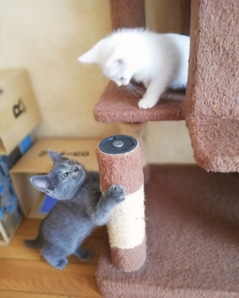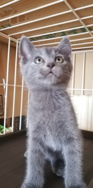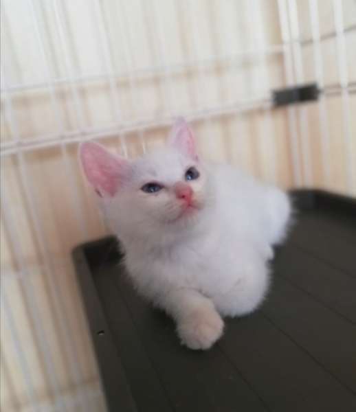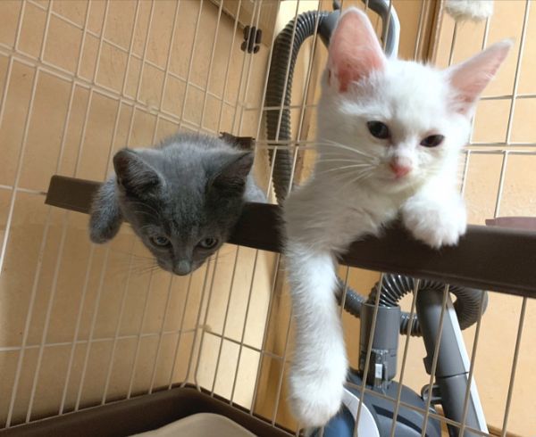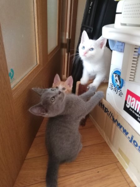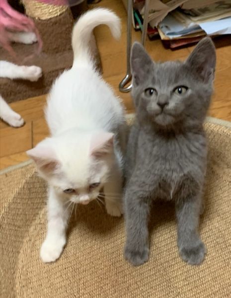 | 特徴(性格など) | ★健康状態は良好です ・ エイズ·白血病ウイルス陰性 ・ 三種混合ワクチン1回目接種済み ・ レボリューションスポット済み ・ 検便チェック問題なし 生後1ヶ月半くらいになる全身がグレーの男の子、真っ白な青いおめめの女の子です。 男の子の方は明朗快活な性格で、ごはんの空気を察すると柵をよじ登って部屋を移動してきます。 そのくせおっとりしていて、ごはんを食べるのはゆっくりだったりします。 いつもご機嫌でよく喉をゴロゴロ鳴らしてくれます。 女の子の方はおっとりマイペースで、他の兄弟たちがごはんを食べていてもぐっすり眠ってたりします。 白猫によく見られる神経質なところはなく、穏やかでやわらかなとってもいい子です。 兄妹なかよく毎日楽しそうに運動会しています。 |