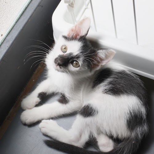 | 特徴(性格など) | 顔面から指の先までおしゃれに余念がない素敵柄です。 ミルクから人間が育てたので人馴れしています。 今は遊ぶのに夢中で、起きている間は兄弟と一緒にほとんどずっと走っています。 子猫が寂しくない環境をご用意ください。 やんちゃな子猫が安全に遊べるように 部屋がしっかりと片付いたご家庭が希望です。 事故防止対策、脱走防止対策をしてお迎えください。 |