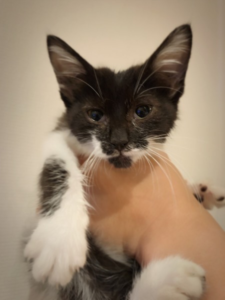 | 特徴(性格など) | シロクロの子猫で、性格はとても大人しくて、人懐っこいです。 | ||