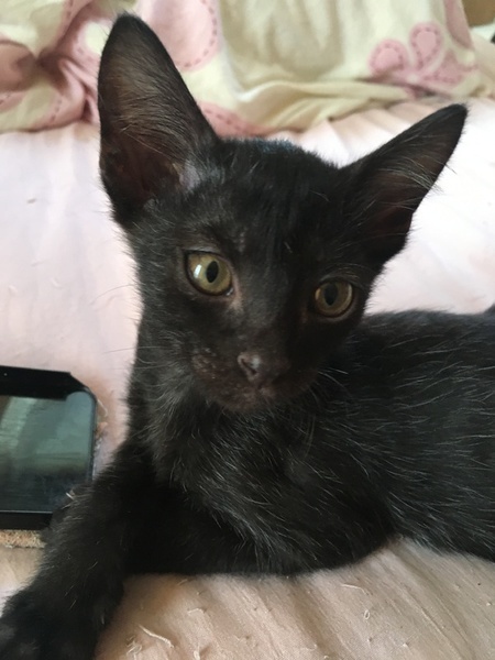 | 特徴(性格など) | きょうだいで1番小さいですが、食い意地は人一倍ある男の子です。 ※誕生日は推定です。 完全に真っ黒ではなく、胸元と下腹部に白毛が生えてます。 保護当時は衰弱しきっており、ミルクもろくに飲めませんでしたが、今では遅れを取り戻そうとしているのか、食い意地がすごいです。チュールはパウチをかじるので、与える時は器に出してください。 とても甘えん坊でひっつき虫です。 |