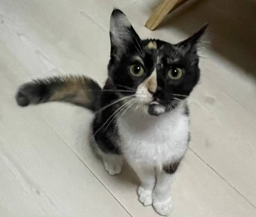 | 特徴(性格など) | 【仮名】ランチちゃん 【性格】とっても特徴的なサビ柄のランチちゃん♪ 性格はそりゃあもう・・・三毛ですからヒメで間違いありませんよ(笑) おもちゃ遊びもアタチが一番!ナデナデもアタチが一番!! 世界はアタチを中心に回っていると信じて疑わないにゃんこです(笑) ある意味下僕を楽しめる方ウェルカムですよ~♪ 同世代とのペアでお迎え頂けると嬉しいです♪ ※1匹譲渡相談 |