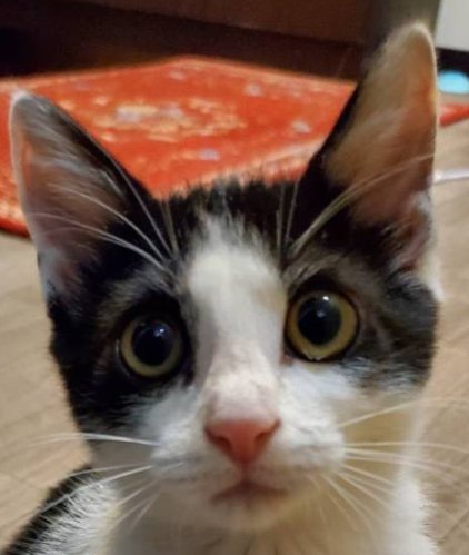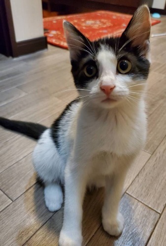 | 特徴(性格など) | 【仮名】グーニーちゃん 【性格】キレイなシンメトリーハチワレなグーニーちゃん♪ 性格もまんまハチワレらしく人懐っこく 抱っこも好きなんです♪ 歩くと一緒についてきますよ~♪ 体調面でも心配無用! 元気で良く食べてタップリ寝てます(笑) 同世代のにゃんことペアでのお迎えを希望します♪ ※1匹譲渡不可 |