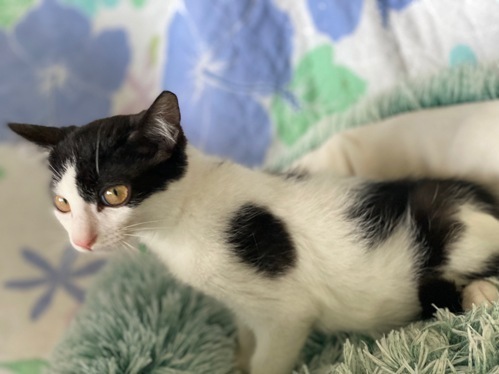 | 特徴(性格など) | 【仮名】ドッティーくん 【性格】おっきなおめめが特徴のドッディーくん♪ 単にビックリ顔なだけというウワサも(笑) でもちょっとモフっててかわいいコなんですよ♪ ヒトと遊ぶのもネコと遊ぶのもバッチリOK! 元気いっぱいにゃんこです! 同世代のにゃんことペアでのお迎えを希望します♪ ※1匹譲渡不可 |