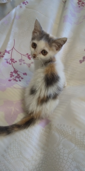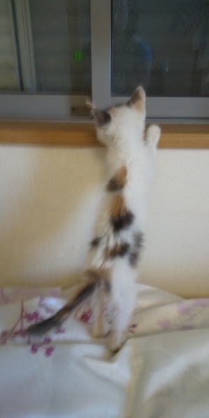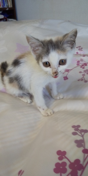 | 特徴(性格など) | おとなしいパステル三毛の女の子です。 おそらく元飼い猫が捨てられたのだと思いますが、抱っこすると グルグルいって人なれはしています。 |