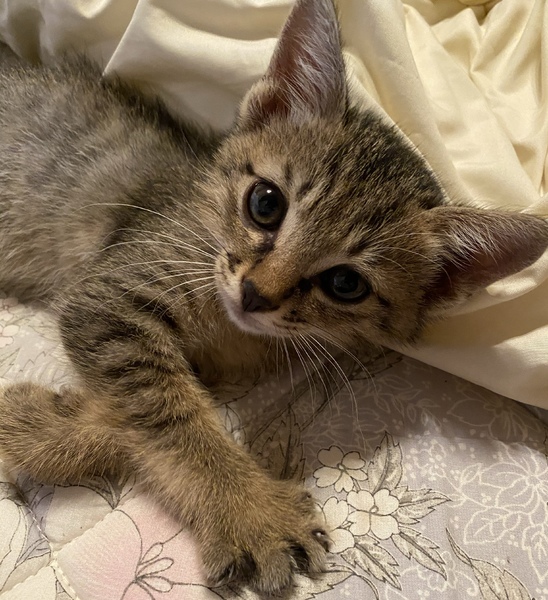 | 特徴(性格など) | 可愛いキジ猫ちゃんの子猫(雄)です。保護した時から人懐っこい性格で、その夜には娘と一緒に眠ったりして、とても可愛いです。すでに自宅に猫を飼ってるのですが、その猫ちゃんのおトイレで一緒におしっこもできている様子。今の所、粗相していません。カリカリフードも食べ始めました! | ||