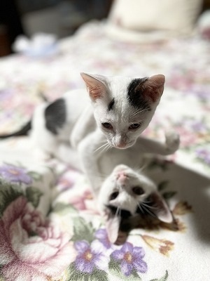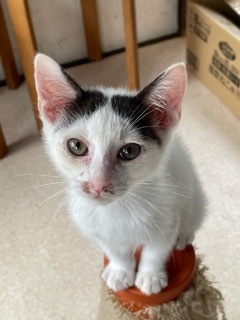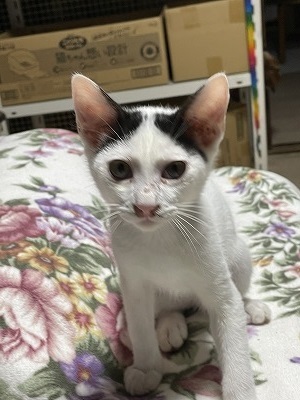 | 特徴(性格など) | 保護場所が、小学生の通学路だったので、動くようになったら小学生にいつも抱っこされていた事もあり、小さな子供さんも大好きな子猫です。 |
