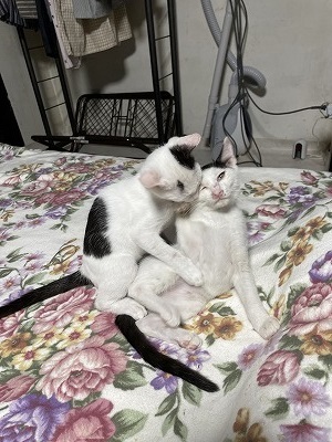 | 里親募集する理由 | 不妊手術しないでたくさんの猫を飼育していた場所で、空家を寝床にして産んだ2匹の母猫は、TNRする事にして、エイズ・白血病は陰性でした。子供8匹は、レスキューしました。 | ||