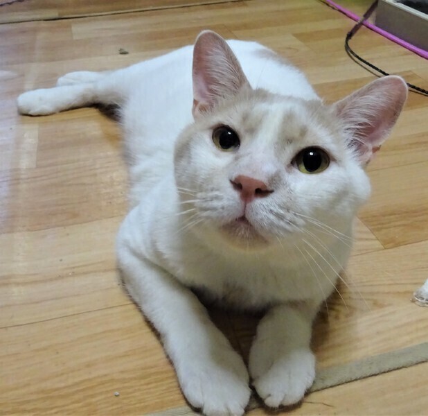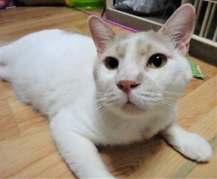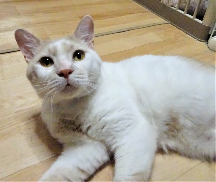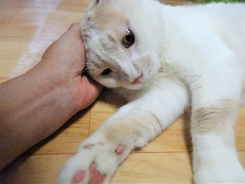 | 特徴(性格など) | 仮名: とら松くん(オス) 毛色: 白茶(茶色は淡いクリーム色です) 性格: のんびりで大人しく、甘えん坊です。 自分からすり寄ってきたり、なんとなく、くっついて来たりして、撫でると嬉しそうです。 膝の上に乗ったり、甘えて来ますが、気が済むと自分の好きな所で過ごしています。 多頭崩壊の場所ですから、猫には馴れているようで、むしろ猫がいる環境の方が好きなのかなと思います。 一人だと落ち着かない感じがあります。 デリケートな所もあり、全頭保護され大きく環境が変わった時には、ストレス性のはげが出来たりしました。 見かけよりは神経が細かいようです。 先住猫ちゃんがいるお家が良いかと思います。 ノミ取り済 検便済 駆虫済 3種混合ワクチン済 去勢手術済 猫エイズ・白血病ウィルス検査は共に陰性です |