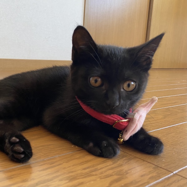| 特徴(性格など) | ものすごく人懐っこい性格で、スリスリして甘えてきたりゴロゴロしてます。肩に乗るのも好きみたいです。 目の色は茶色〜オレンジ系でまん丸でとってもかわいいです。鍵尻尾が特徴です。 初めて会う私にも逃げずに捕獲器を使わないで手で捕獲できたくらいなので、警戒心がないと思いました。 新たなお家でもすぐ順応すると思います。 |