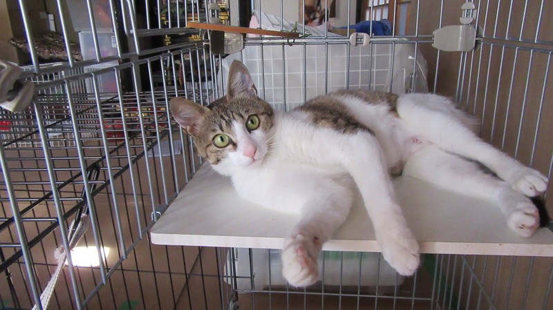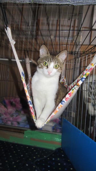| 特徴(性格など) | 仮名:サーちゃん 1才 女の子 白地にキジトラ柄 <チャームポイント> ゲージの一番上から一番下まで降りて駆け寄って来る所 きれいなピンクの鼻先 遊びたくてコロンと寝転がる所 ニャンモックが大好き ちゅーる大好き ゴロゴロ上手 甘噛み上手 <自慢できる所> 自分の子4匹産んで、他の子4匹 計8匹 育てたこと トイレの躾出来てます。 |