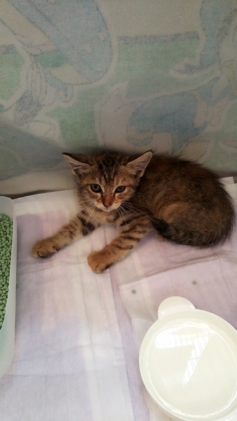| 里親募集する理由 | 自宅の敷地内に住み着いて居て近所の方も分からず母猫からはぐれた様で暑い中母猫を探して鳴いているようで放って置けば車に引かれるかカラスに襲われると思い保護しました。病院に連れていき怪我病気などもなくとても元気です。家では事情が有り飼えません。里親になってくれる方お願いします。 | ||