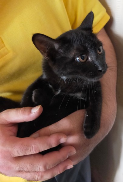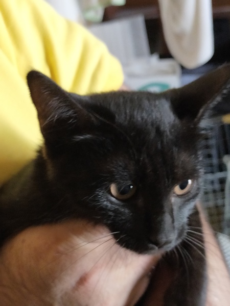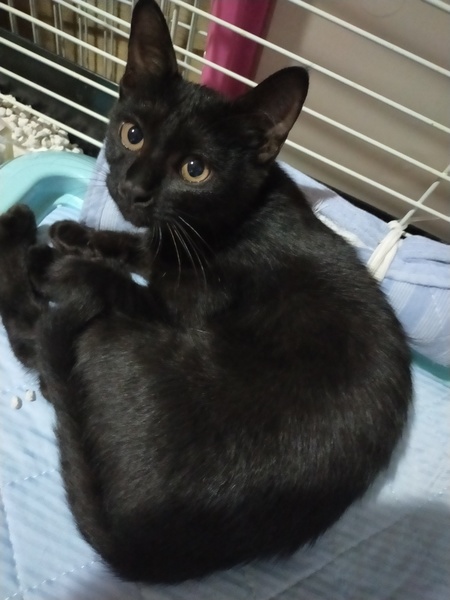 | 特徴(性格など) | 基本黒猫ですが、胸のあたりに少し白が混じっています。 性格は怖がりですが甘えん坊です。 人にはなつきやすい性格です。 |