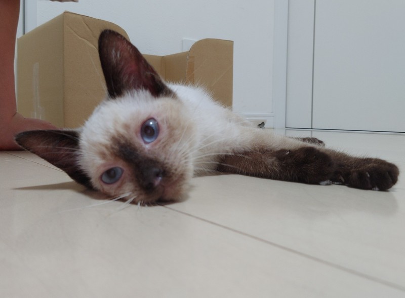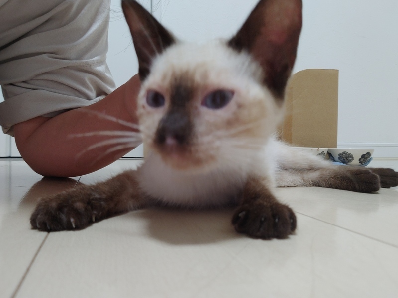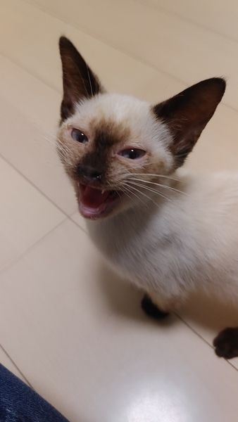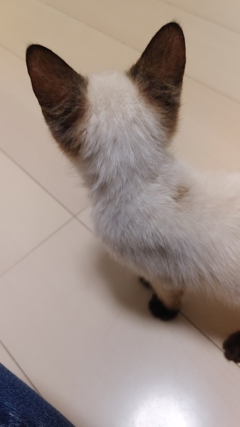 | 特徴(性格など) | うちの自宅の庭で衰弱していたところを保護しました。シャム猫のようなねこちゃんで、病院にて、ノミトリの薬と、少し鼻水がでていた為、抗生剤を打ってもらい、お薬を処方していただきました。性別は女の子で、かなり人なつっこい可愛い子です。 | ||