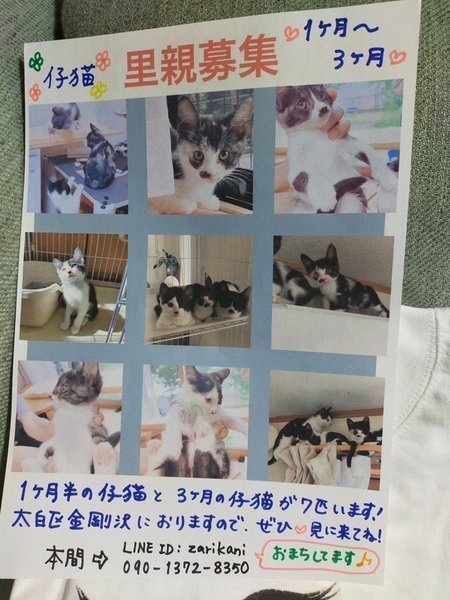 | 里親募集する理由 | 命を決して見捨てない、男気あふれるお父さんの代理投稿です。他力本願の世の中、自らを顧みず、広く優しい心で多くの猫たちを救っています。 このたび、新たに猫親子の救済を依頼され、緊急に里親さんか預かりさんが必要になりました。 子猫はみんなやんちゃで元気です。先住猫の子守りで愛情たっぷりに育っています。 お父さんのTwitterアカウントです。https://twitter.com/umetarou131?s=09 お見合い随時。お問い合わせお待ちしています。 |