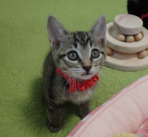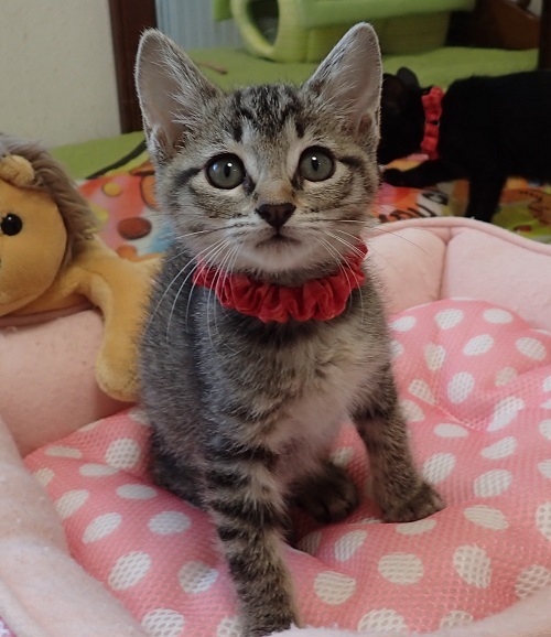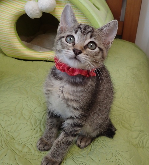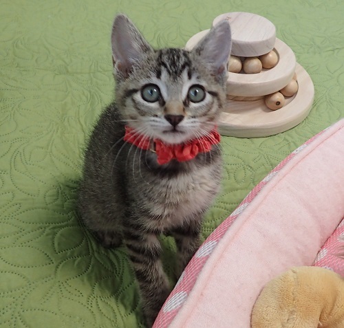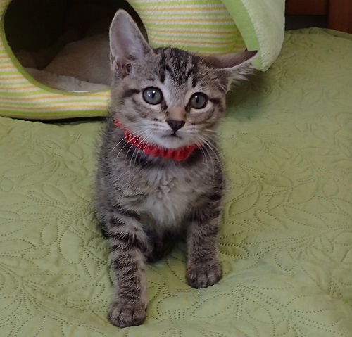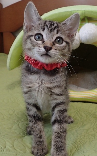 | 里親募集する理由 | 80代のご夫婦がお庭に居付いたメス猫を手術してあげたら、子猫が現れて仰天。子育て中だったようで、母子共家に入れて下さった4匹の子供猫のうちの1匹です。里親さまを見つけて欲しいと頼まれました。 | ||