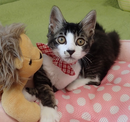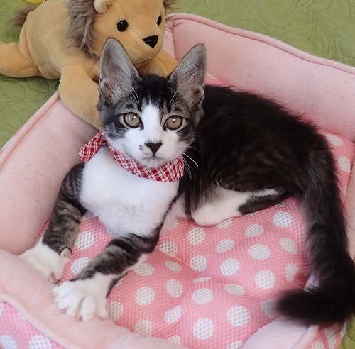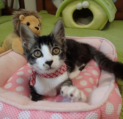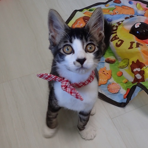 | 里親募集する理由 | 80代のご夫婦がお庭に居付いたメス猫を手術してあげたら、子猫が現れて仰天。子育て中だったようで、母子共家に入れて下さった4匹の子供猫のうちの1匹です。里親さまを見つけて欲しいと頼まれました。 | ||