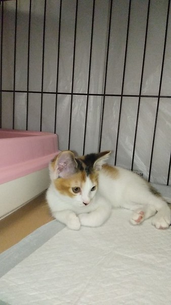 | 特徴(性格など) | 元気。白に茶の黒模様。1回目のワクチン接種済み。 | ||