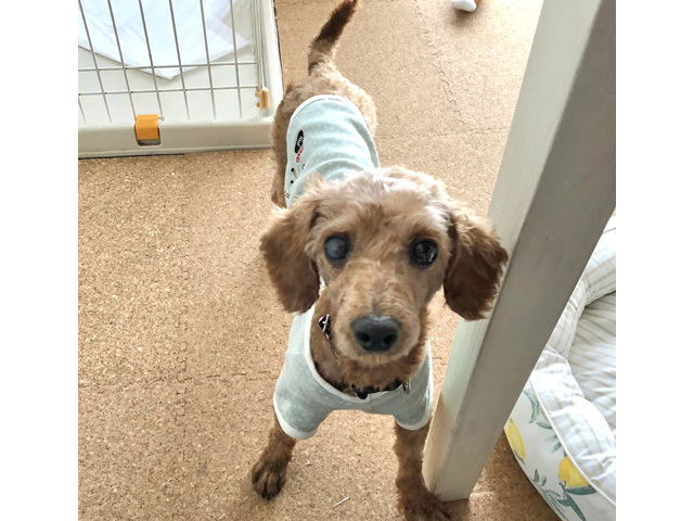| 特徴(性格など) | ■ 基本情報 ・管理番号 【210630-14】 ・犬種・性別・名前(仮) トイプードル ♀ 甘夏(あまなつ) ・年齢・体重 推定4~5歳 体重 3.78kg(痩せすぎ) ・特徴 大きすぎず、小さすぎずのレッドのトイプードルです。足は長めです。 ・性格 臆病なところがありますが、人は好きで、活発な子です。 ■ 暮らしについて ・日常過ごす場所 普段は室内フリーで過ごしています。食事時、就寝時のみケージに入ります。 ・食事 良質な原材料を使ったプレミアムフードのドライを食べています。トッピングはなんでも喜びます。 おやつも大好きで、野菜や果物も好き嫌いなく食べます。 ・トイレ 室内でも屋外でもします。 室内でのトイレシーツの認識は100%ですが、一歩手前すぎてしまったりということはあります。 大はしながら歩いてきてしまいがちです。 ですが、初日から自主的にトイレに行きましたので基本的にわかっている子です。 ・散歩 まだ外が怖いようです。おとなしく後ろについて歩きますがまだ楽しめてはいないようです。 少しずつ慣らしていますが、まだリードを見せても逃げて、行きたがりません。 ・お留守番 フリーで問題なくできています。 ケージやサークルでのお留守番は不安になるようで、ウロウロしたり、(した後なのに)トイレをしてしまったりしますので、フリーでのお留守番のほうが良いかと思います。 いたずらは、環境の整備をしていただいた上であれば、それほど心配はありません。 ・外出 車は良い子で乗れます。車酔いもありません。キャリーはあまり好きではありません。 ・お手入れ シャンプーやブラッシングは素直にさせてくれます。 目薬などは少しイヤイヤがありますが怒ったりすることはありません。 ただ、とてもおとなしくさせてくれるわけではありません。 ・他犬との関係 問題なく過ごせます。 ・人との関係 怖がりさんではありますが、人は大好きです。 ・お願いしたいこと ・引取時、角膜の傷が酷かったため、目薬3種を6回/日、点眼しています。 治療中のため、今後の期間は未定ですが目薬点眼の継続が必要です。 ・少し臆病であるため、散歩や色々なことに暖かいお気持ちでお付き合いください。 ・パテラ左右グレード1です。軽度ですが、足が長いため、フローリングでもとくに滑りやすいです。 床の滑り止め対策をお願いいたします。 ・トリミング必要犬種です。日々のブラッシングや定期的なトリミングをお願いします。 ■ 医療管理について(実施日) ・混合ワクチン 〇 5種(6/30) ・狂犬病予防注射 × ・フィラリア抗原検査 -(陰性)(7/1) ・不妊手術 〇 (7/6) ・マイクロチップ 〇 (7/6) ・健康チェック 〇 (7/1) ・スケーリング 〇 (7/6) ・便検査 ・その他の医療措置 駆虫ドロンタール(7/1)駆虫バイコック(7/2)スケーリング時に抜歯 ・必要な継続医療 期間は未定ですが目薬点眼の継続が必要です。 ・現在の一時預かり先 千葉県白井市 ・預かりスタッフ ansaku ・預かりブログ 犬、ときどき猫(2021/7/8~) ・http://ansaku.blog39.fc2.com/ ・引取時の様子 ・http://chibatarianna.jugem.jp/?eid=7123 |