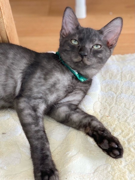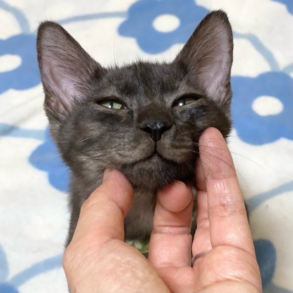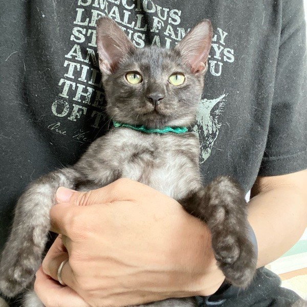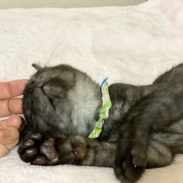 | 特徴(性格など) | 穏やか「バンビーノ」くん❤ 眠くなるといっぱいナデナデして欲しくって、ヨイショッ、ヨイショッ?とお膝にのってきてくれるバンビーノくんは超甘えん坊♪ 現在、ドライフードを24時間の置き餌として栄養補給、水分補給のため一日3回パウチを与えています。 <推定誕生日:6月始め> |