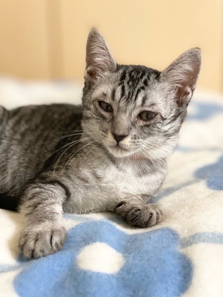 | 特徴(性格など) | おっとりマイペース「マリナーラ」ちゃん❤ お友だちと遊んだり、別場所でひとりお気に入り場所みつけて爆睡したり、マイペースお嬢さま♪ 声をかけると、なぁ~~にっ!でゴロゴロな甘えっコです 現在、ドライフードを24時間の置き餌として栄養補給、水分補給のため一日4回パウチを与えています。 <推定誕生日:6月始め> |