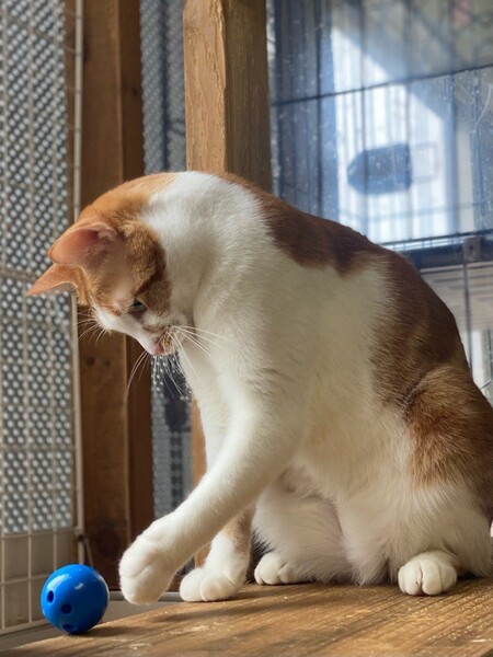| 特徴(性格など) | まだまだビビりの「モッツァレラ」ちゃん❤ 大好きパウチタイムになると、少し離れた場所で、にゃおにゃおと催促♪ 最初は緊張するけど、可愛い威嚇も一応あるけど、緊張しながらもナデナデさせてくれて、まんざらでもない?! ゆっくり向き合って下されば、きっと甘えっコ間違いなし♪ 現在、ドライフードを24時間の置き餌として栄養補給、水分補給のため一日2回パウチを与えています。 <推定誕生日:5月始め> |