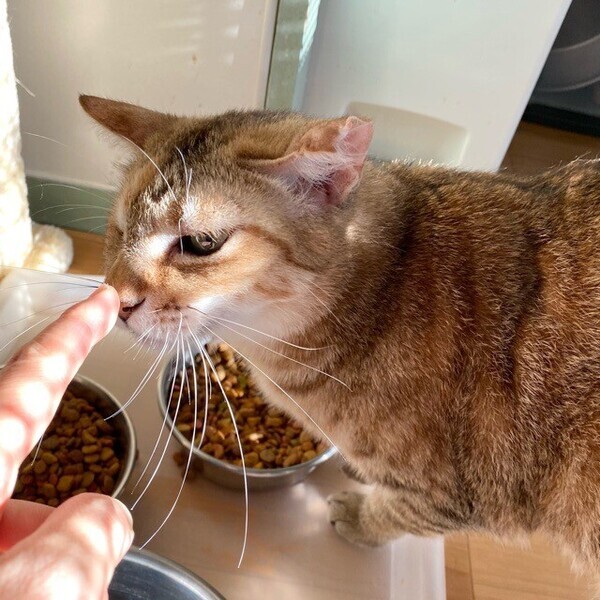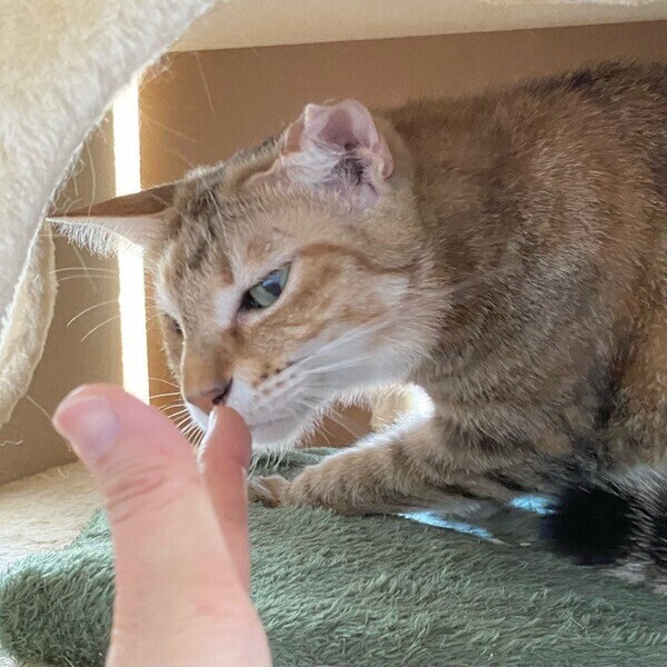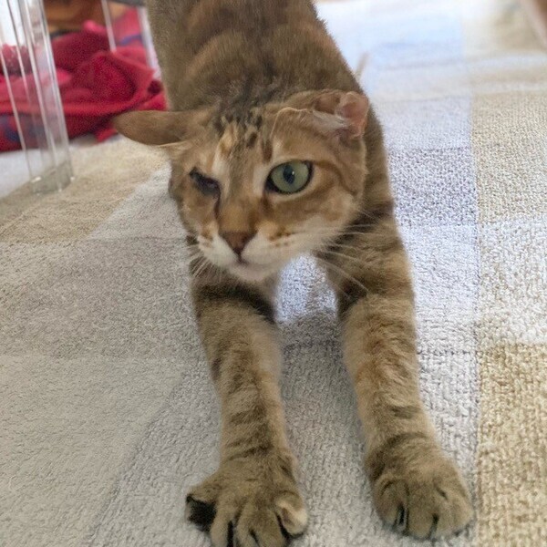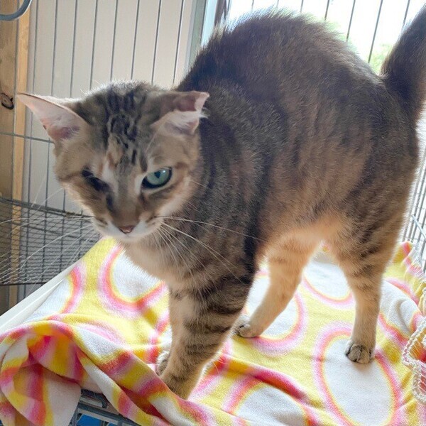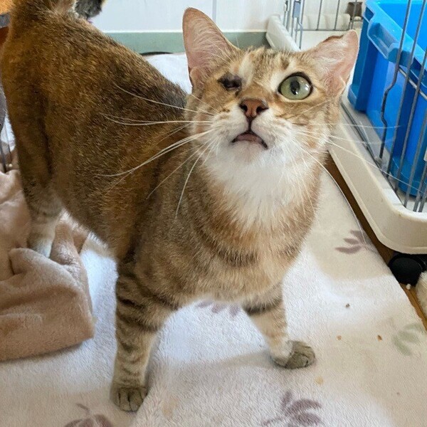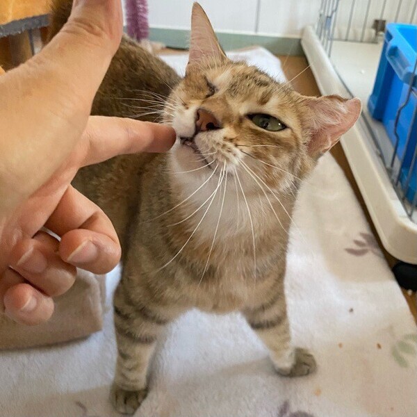 | 特徴(性格など) | 甘えっコ「ローリエ」ちゃん❤ 団体引き取り後、かなりのビビりさんで、自分からスリスリできなし、抱っこもまだ怖い!だったのに、環境に慣れてくれたのか、ある日、突然、甘えっコに変身♪ ホントはかなりの甘えっコだったのに、ずっと我慢してた?です。 少し時間がかかるかも知れませんが、デレデレ甘えっコになってくれます♪ 片目、眼球萎縮のハンディ、エイズ陽性のハンディ抱えていますが、現在発症の兆し全くなく、日常生活に支障なく、元気に過ごしてくれています。 現在、ドライフードを24時間の置き餌として栄養補給、水分補給のため一日2回パウチを与えています。 <推定誕生日:2016年春ごろ> |