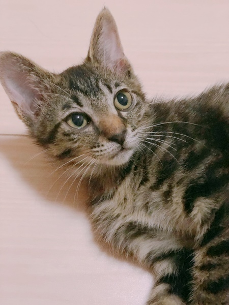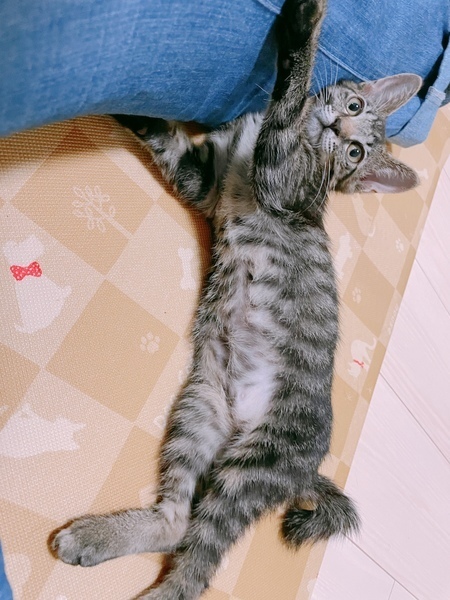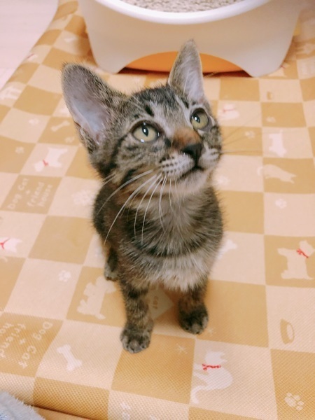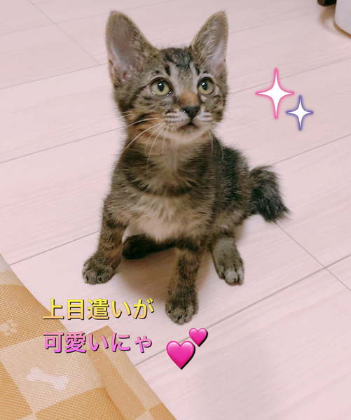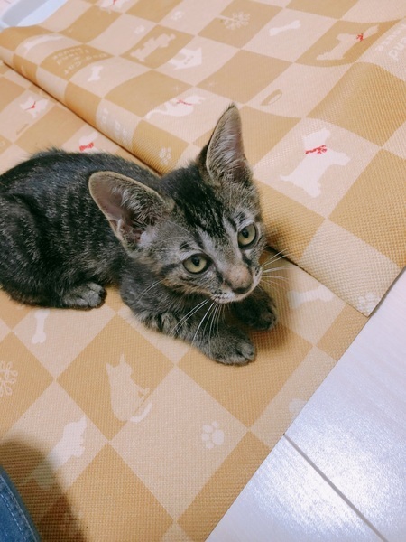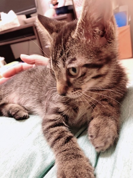| 特徴(性格など) | キジトラ 甘えん坊 おもちゃのボールで遊ぶの大好きです 寝転がるとすぐに上に乗ってきてフミフミします ・ノミダニ駆除レボリューション投与済み ・ノミによる皮膚炎もありましたが、今は完治 ・検便検査 寄生虫陰性 ・猫エイズ、猫白血病ウイルス検査 陰性 ・猫風邪治療終了 風邪の症状でクシャミと鼻水が出ていたが、現在はほぼ出ていません |