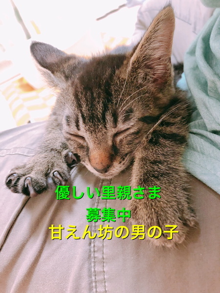 | 里親募集する理由 | 7/20に職場に急に現れて室外機の裏に隠れてミャーミャーと鳴いていました 見に行って声をかけたら足元に寄ってきてスリスリしてきて 見ただけで風邪ひいていてノミだらけだったので、保護しました ただ、我が家は保護猫4匹をすでに飼っているので、これ以上は難しいので里親募集したいと思います 犬猫の殺処分問題など、見過ごせないと思っております 自分にできる範囲ではありますが、保護活動しておりますのでよろしくお願いいたします |