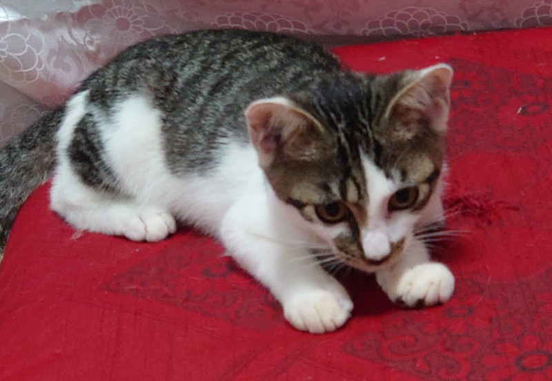 | 特徴(性格など) | 保護当初は、逃げ回っていたが、元々、人なつこい性格らしく、3日ほどすると慣れてきて警戒することもなくなりました今では、人間の目の前でフードを食べたり、トイレも決められた場所でするようになりました |
