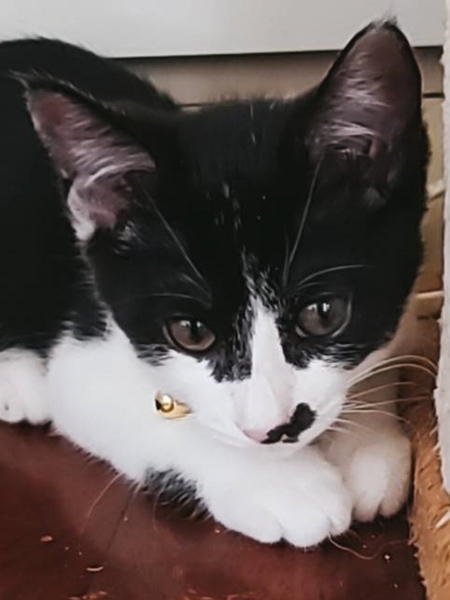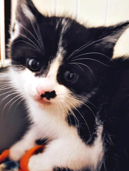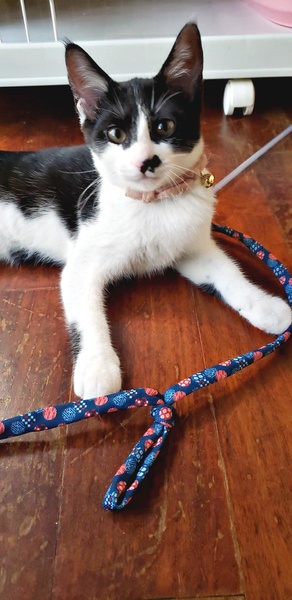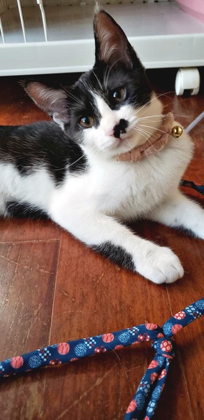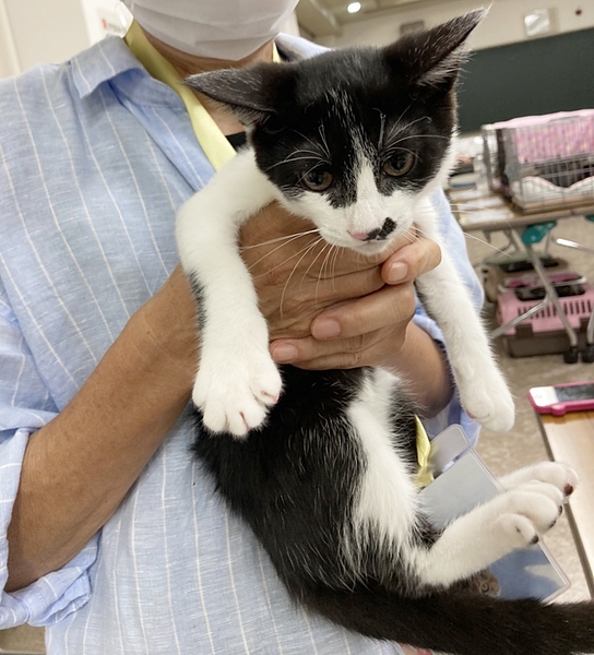 | 特徴(性格など) | 【仮名】あおい 【性格】 黒白 外猫が生んだ子猫ですが、保護した時からあまり人を怖がらず、すくすくと育ちました。 初めて会った人にもすぐに遊んでと催促し、遊びに満足したら抱っこでゴロゴロいって休憩します。 姉妹のかりんと一緒にプロレスごっこしたり、くっついて寝たりします。 まだ子猫なので、なるべくお留守番の時間が少ないご家庭が希望です。 |