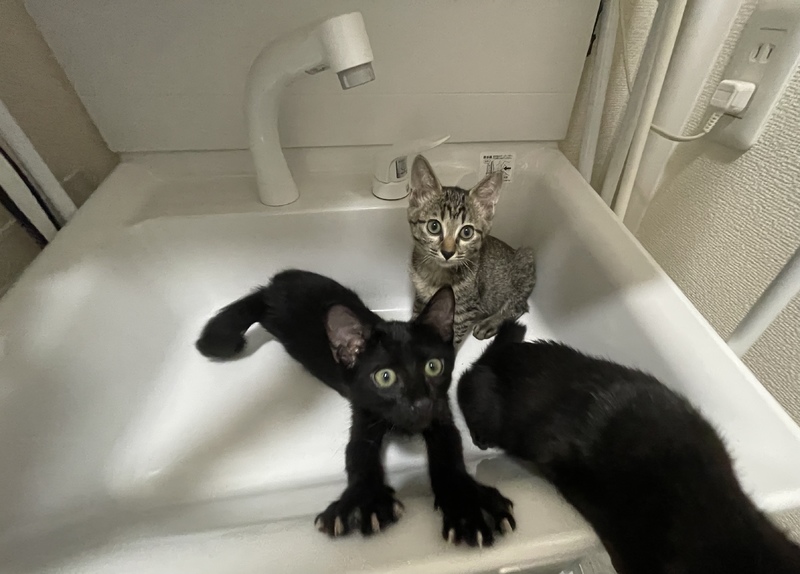 | 特徴(性格など) | キジネコ 1 メス 黒猫 1メス 2オス |