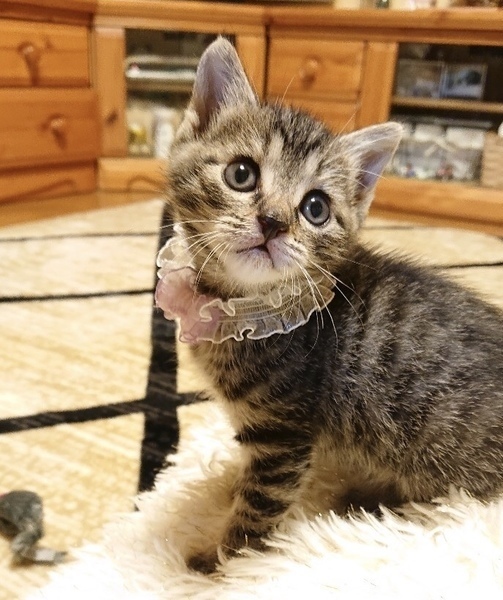 | 里親募集する理由 | 車道のど真ん中に落ちていました。車が容赦なくこの子の上を走ってました。その風圧でコロコロと転がっていました。少しでもずれていたらこの世に居なかったと思います。目も見えず歩けなかったのも幸いでした。怖い思いをしたでしょう。救われたのはこの子が無傷でとても元気で無邪気だった事です。 子猫の育児は任せて!という方はいらっしゃいませんか?この子を家族に迎えてやって頂けませんか? どうぞ宜しくお願い致します。 |