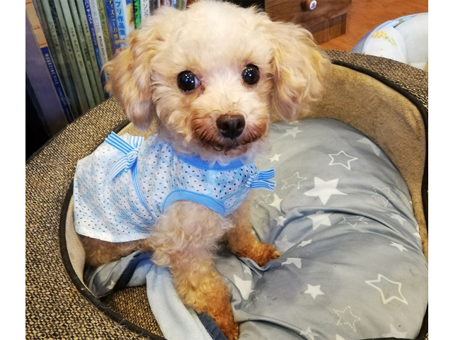 | 特徴(性格など) | ■ 基本情報 ・管理番号 【210630-18】 ・犬種・性別・名前(仮) トイプードル ♀ エバ ・年齢・体重 推定4~5歳 体重 2.0kg ・特徴 毛色はアプリコットで小さなトイプードルです。 ・性格 明るく天真爛漫です。 人、犬に対してもフレンドリーですが、人から働きかけるスキンシップはご遠慮したい、という行動をとります。 ■ 暮らしについて ・日常過ごす場所 普段は室内フリーで過ごしています。 他に身体の大き目な犬、時々対犬に怒る犬、達がいるので留守番、就寝の時にはサークルに入れていますが、なるべくサークルに入れる必要のない生活環境での飼育を希望します。 ・食事 良質な原材料を使ったプレミアムフードのドライをふやかして与えています。 粉末を含む薬をウェットやちゅーるに混ぜてトッピングしています。おやつも喜んで食べます。 ・トイレ シートの認識はありますが、マットなど柔らかな足ざわりのものがあればそこでしてしまうこともありました。 サークルの中でもベッドは汚さずシーツ部分で排泄します。 ・散歩 拡張性心筋症という心臓病のため散歩はしていません。 ・お留守番 サークルでもフリーでも問題なくできています。いたずらなどもありません。 ・外出 心臓病のため、散歩や外遊び・外出の同伴などはさせないように、との獣医師からの指導を受けているので通院以外の外出はさせていません。 通院の際に車酔いをしたことはありません。キャリーで静かにできます。 ・お手入れ ブラッシングなどはあまり好きではありませんが大人しくさせてくれます。 シャンプー、トリミングは動物病院で獣医師がいる時にしてもらっています。 ・他犬との関係 問題なく過ごせています。 怖いもの知らずのところがあるので他犬との同居は見極めてから、の必要があります。 ・人との関係 人には素直で懐っこいですが甘えてきたりはしません。 身体に負担がかかるためか触れ合われるのは避けたい様子が見られます。 留守番させていた帰宅時などはとても喜んでくれます。 ・お願いしたいこと ・積極的治療ができない心臓病、拡張性心筋症で心臓の働きをサポートする投薬が欠かせません。 月に一度程度のチェック、投薬継続をお願いします。 投薬をしていても突然死の可能性があり、予測することや回避策がないことをご理解・ご了承ください。 ・心臓病のため、病気やケガなどが発生した場合に手術ができません。 細かな健康観察・ケガ予防などを心がけてください。 ・心臓に負担がかからないよう体重管理をお願いします。 ・極力ストレスや身体的負担のないような家庭環境でないと譲渡は不可となりますことをご了承ください。 ・移動の負担がかかる遠・中距離のご家庭からのご応募は辞退させて頂きますことをご理解ください。 ・トリミング必要犬種です。 トリミングの際の負担が少ないよう、ブラッシングなど日々のお手入れはこまめにお願いします。 ■ 医療管理について(実施日) ・混合ワクチン 〇 5種(6/30) ・狂犬病予防注射 譲渡時の健康状態により検討 ・フィラリア抗原検査 - (7/1) ・不妊手術 × 心臓病のため不可 ・マイクロチップ 近日装着予定 ・健康チェック 〇 (7/1) ・スケーリング × 心臓病のためできていません ・便検査 〇 (7/1) ・その他の医療措置 フロントライン(6/30)、駆虫ドロンタール(7/1)駆虫バイコックス(7/2) 引き取り後、入院中に心臓エコー、心電図などの心臓精査をしています。 ・必要な継続医療 拡張性心筋症の定期的な経過チェック、投薬の継続が必要です。 ・現在の一時預かり先 千葉県鎌ヶ谷市 ・預かりスタッフ あんな ・預かりブログ ちばたりあんな(2021/7/12~) 「エバ」 ・http://chibatarianna.jugem.jp/?cid=276 「S★KG」 ・http://chibatarianna.jugem.jp/?cid=218 ・引取時の様子 ・http://chibatarianna.jugem.jp/?eid=7123 |