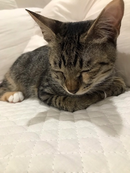 | 特徴(性格など) | ◆エピちゃん 片目不自由だけど天真爛漫スリゴロキジ白子猫 ○鹿児島県内で保護されました。 ○生後6か月半くらい(2021年12月中旬時点)の、ほぼキジトラのキジ白の女の子です。 ○お腹と手足の先、耳の先以外はほぼ全身キジトラ柄で、ずんぐりコロコロ体型です。 ○尻尾は短めに丸まった鍵尻尾です。 ○右目は見えていないようです。 ○少し首を傾げてナナメになります。理由はわかりません。 ○性格は、遊び上手で天真爛漫、なつっこいスリゴロちゃんで、日がたつにつれ一層スリゴロ増進中です。 ○良く遊び良く食べます。 ○まだ小さな仔猫のため、お留守番の少ないおうちをお待ちしております。 ★ワクチン2回済み、不妊手術済み ★ウイルス検査は猫エイズ、猫白血病ともに陰性。 ★マイクロチップ挿入は成長と体調をみて実施予定です。 第8回コロナに負けるにゃー!おーあみ避難所バーチャル譲渡会 https://youtu.be/nczmqcjxIZ0 ○12/26(日)開催の譲渡会に参加予定! 以下の要項をお読みいただき、ぜひ会いに来てください♪ ☆★☆★☆★☆★☆★☆★☆★☆★☆★☆★☆ ~12月26日(日)市ヶ尾にて譲渡会開催!~ ◎場所・・「東急ドエル市ヶ尾プラーザビル2階集会場」 神奈川県横浜市青葉区市ヶ尾町1154-2 田園都市線「市ヶ尾」駅西口より徒歩約2分 ◎日程・・12月26日(日)(雨天決行) ◎時間・・13時から16時(受付は15時30分まで) (会場に利用可能な駐車場はございません。近隣のコインパーキングをご利用ください。) *3密対策のため、当日12時30分より全時間分の整理券を配布いたします。整理券枚数には限りがございますので、上限に達した場合はご入場できません。 *参加の際は、マスクの着用、アルコール消毒のご協力をお願いいたします。 *当日は検温の上、体温が37度以上の方はご参加いただけません。 *混雑状況により、中止させていただく場合がございます。 ※参加予定の犬猫は体調により参加できない場合があります。ご了承ください。 ☆★☆★☆★☆★☆★☆★☆★☆★☆★☆★☆★☆ |