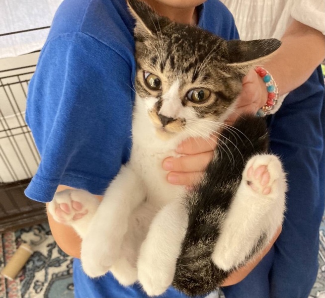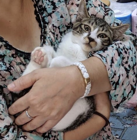 | 特徴(性格など) | ララちゃん(キジ白・長尻尾) 健康状態:良好 ウイルス検査(陰性) 3種混合ワクチン接種:済み 検便・ノミダニ駆除薬:済み 8月5日の体重:1.3キロ お顔に模様があり、お鼻のまわりがチャームポイントです。 三兄弟で保護しましたが、大人しくてお利口さんです。 すぐに触れるようになり、抱っこも大好きで、お世話がとても楽な子です。 兄弟で保護したので、一緒にいけるといいのですが、一匹でも可能です。 |
