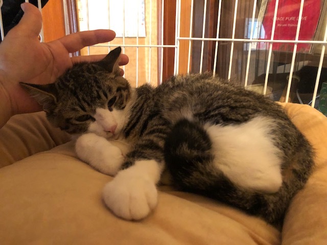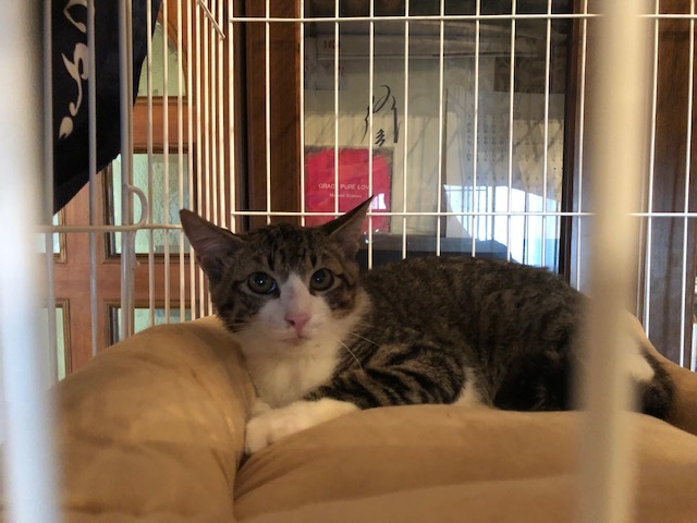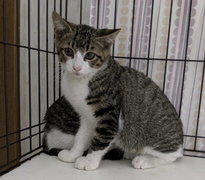 | 特徴(性格など) | 福ちゃん(キジ白・長尻尾) 健康状態:良好 ウイルス検査(陰性) 3種混合ワクチン接種:済み 検便・ノミダニ駆除薬:済み 8月5日の体重:1.5キロ お顔が綺麗なハチワレです。 左右の腕の模様もとても綺麗なイケにゃんです。 ヤンチャで行動的な男の子ですが、抱っこもできる甘えん坊さんです。 ちゅ〜るが大好きで、ペロって食べちゃいます。 兄弟で保護したので、一緒にいけるといいのですが、一匹でも可能です。 |