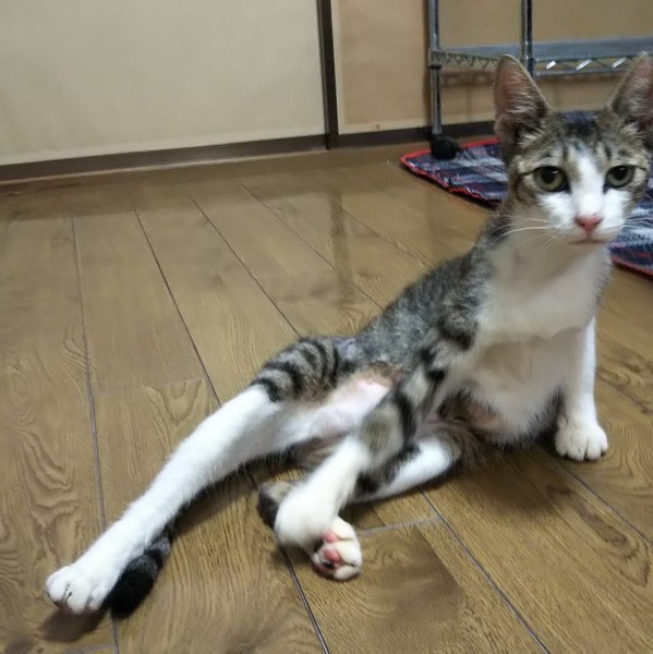 | 特徴(性格など) | 綺麗なキジシロの女の子です。 性格は温和で人懐こくて、ひざのうえにのぼりゴロゴロと喉をならします。 |
