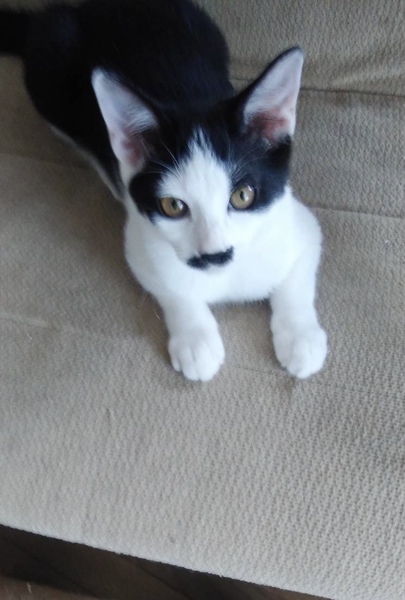 | 特徴(性格など) | 白黒でお髭模様の男の子で尻尾は真っ直ぐです。 |